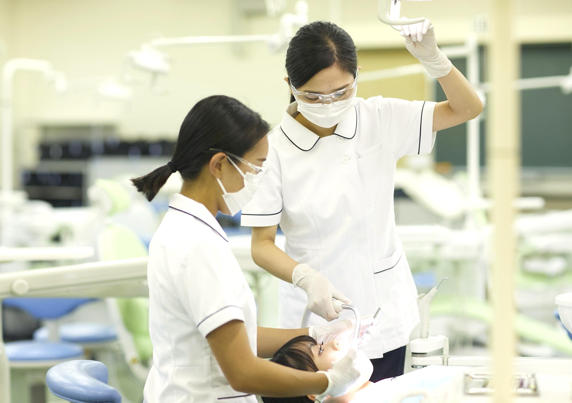実習では「医療安全管理に配慮」しながら患者とのコミュニケーションや歯科処置を学びます。また「診療室の管理、感染予防などを含む歯科衛生士業務全般」についても実践的に学ぶことができます。