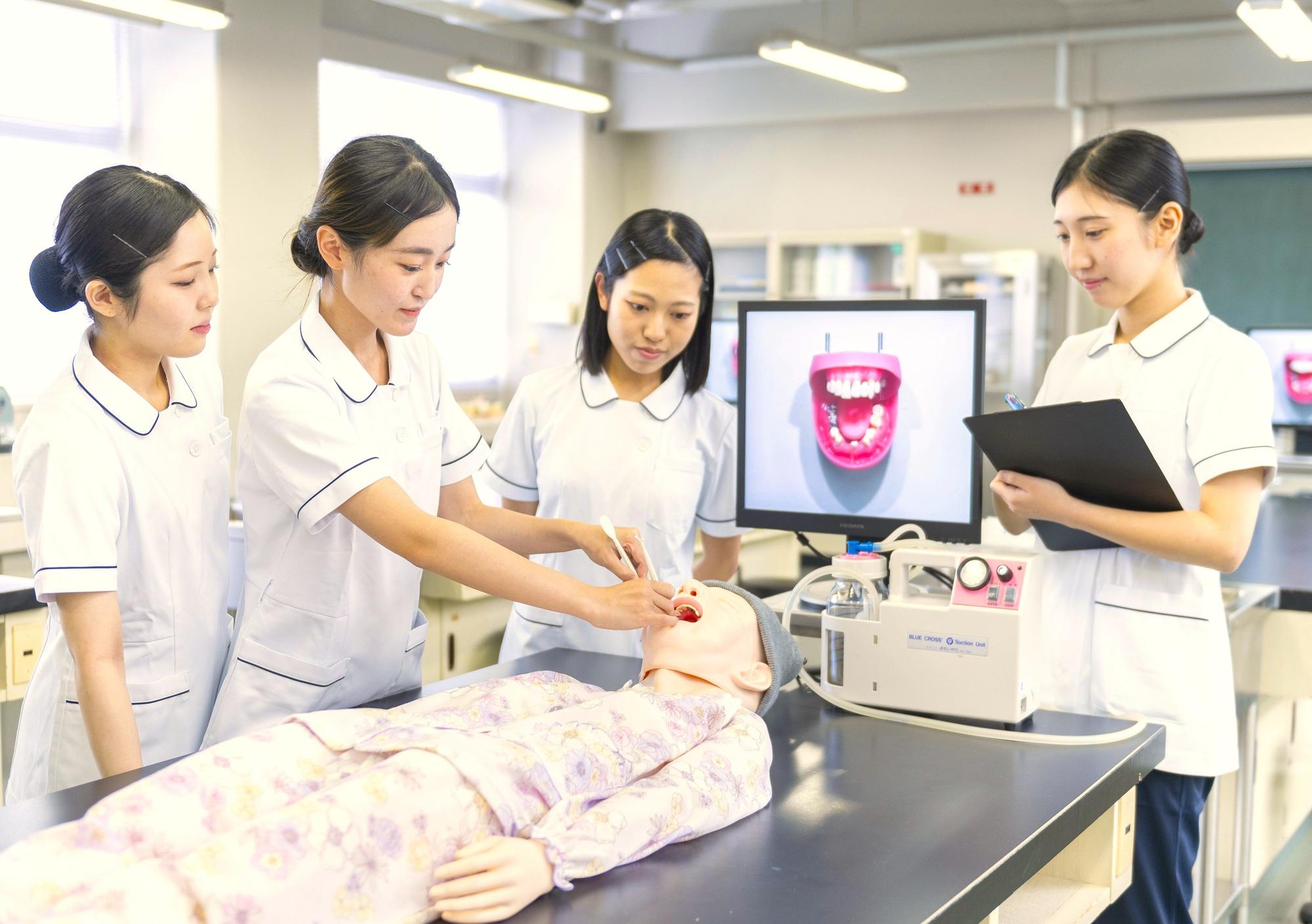 介護の必要な方への口腔衛生管理の基本を学びます。様々な清掃用具の使い方や安全な清掃方法についてシミュレーターを用いて修得します。
