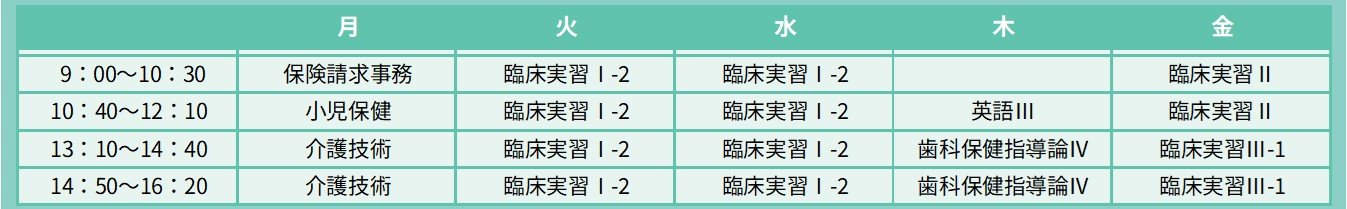 A.学びの幅が広く、多くの知識を身に付けられます。介護が必要な方に対しての口腔衛生管理の基本なども学ぶことができました。また、救急蘇生法や車椅子移乗、体位変換なども身につけることができ、今後医療従事者として働く上での自信につながりました。