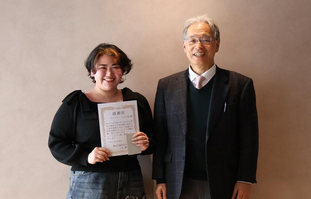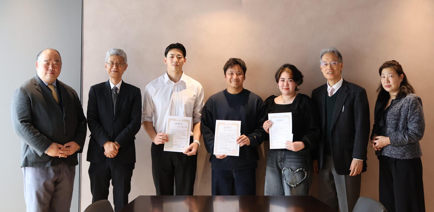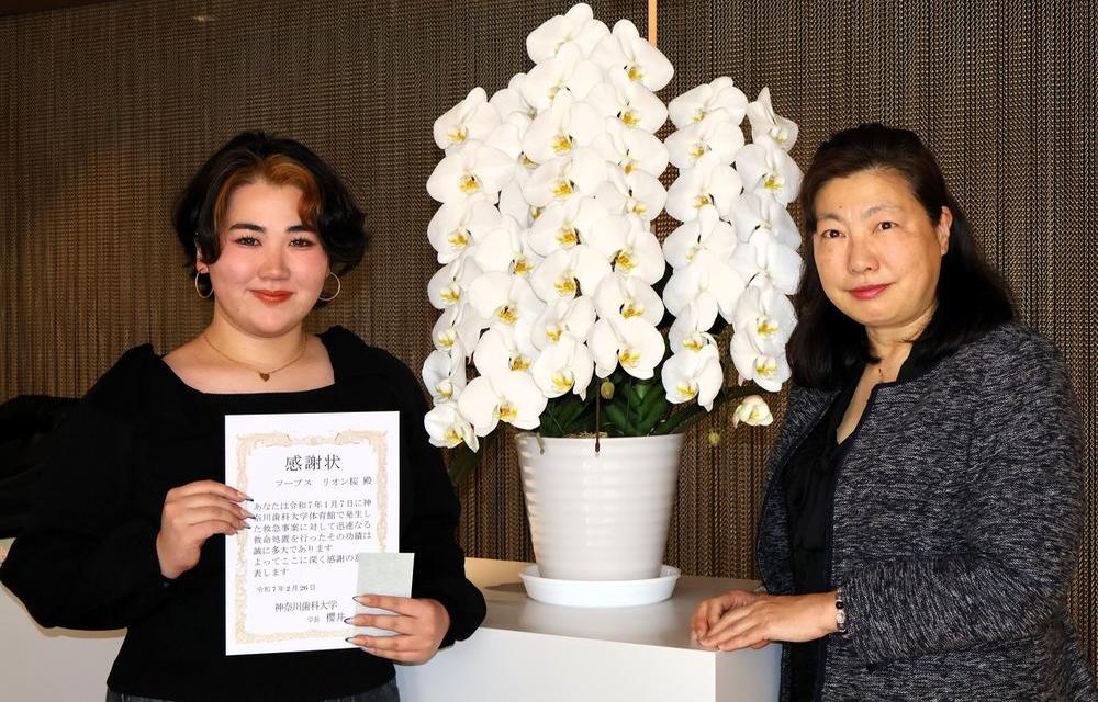 令和8年1月、本学構内において救急事案が発生いたしました。その際、現場付近に居合わせた本院研修歯科医 附田 健作先生、歯学部 武藤 勝太郎さん、短期大学部看護学科 フープス リオン桜さんが、躊躇することなく救命対応にあたり、迅速かつ的確な心肺蘇生法および応急手当を実施されました。三名の冷静沈着で勇気ある行動により、尊い人命が救われました。この献身的な対応は、本学が育成する医療人としての高い倫理観と使命感を体現するものであり、地域社会に対する大きな貢献でもあります。