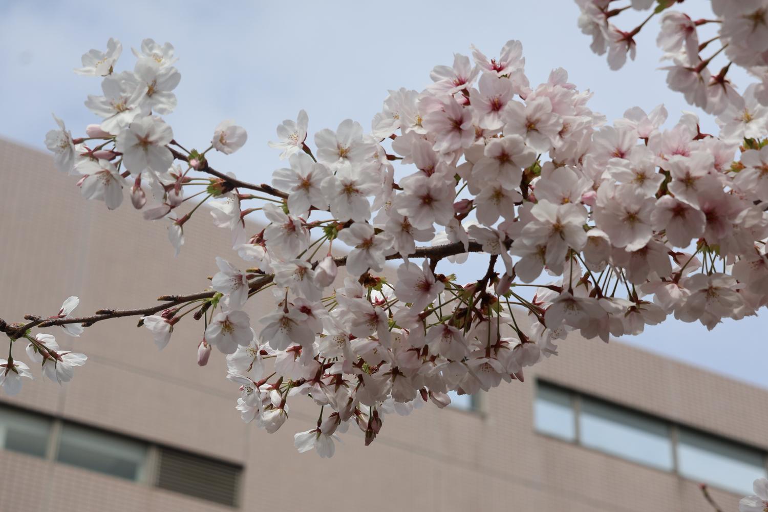 学内の桜が開花いたしました。先週末の暖かさで一気に蕾がほどけ、現在は第2研究棟側の桜が順調に咲き進んでいます。本日はあいにくの「花曇り」ではございますが、曇り空の下で淡く浮かび上がる桜もまた、この時期ならではの風情があります。キャンパスにお越しの際は、ぜひ足を止めて春の訪れを感じてみてください。