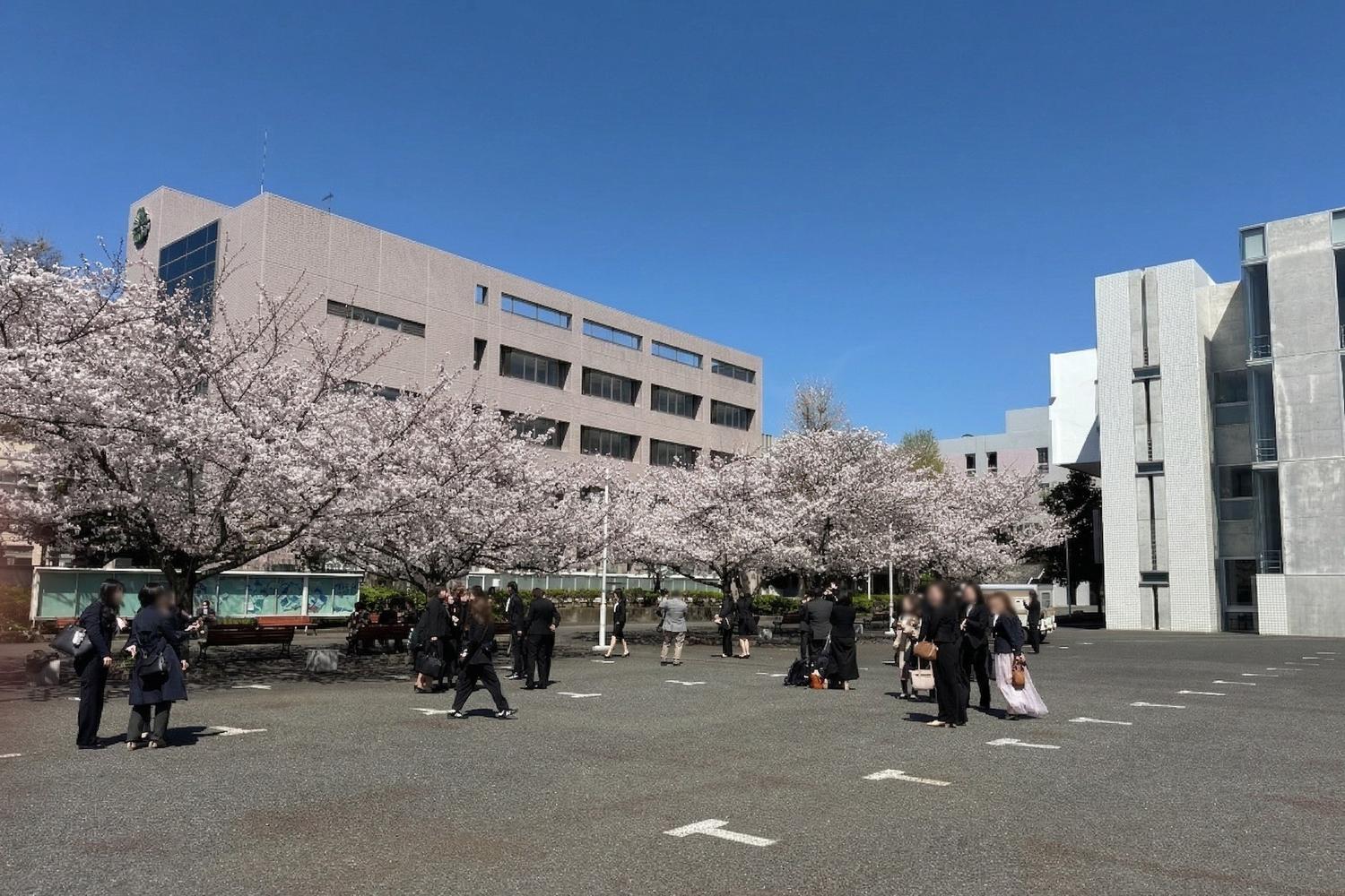 式典後のキャンパスでは、満開の桜の下で記念撮影をされる新入生や在学生の皆様が楽しげな姿が多く見られました。
