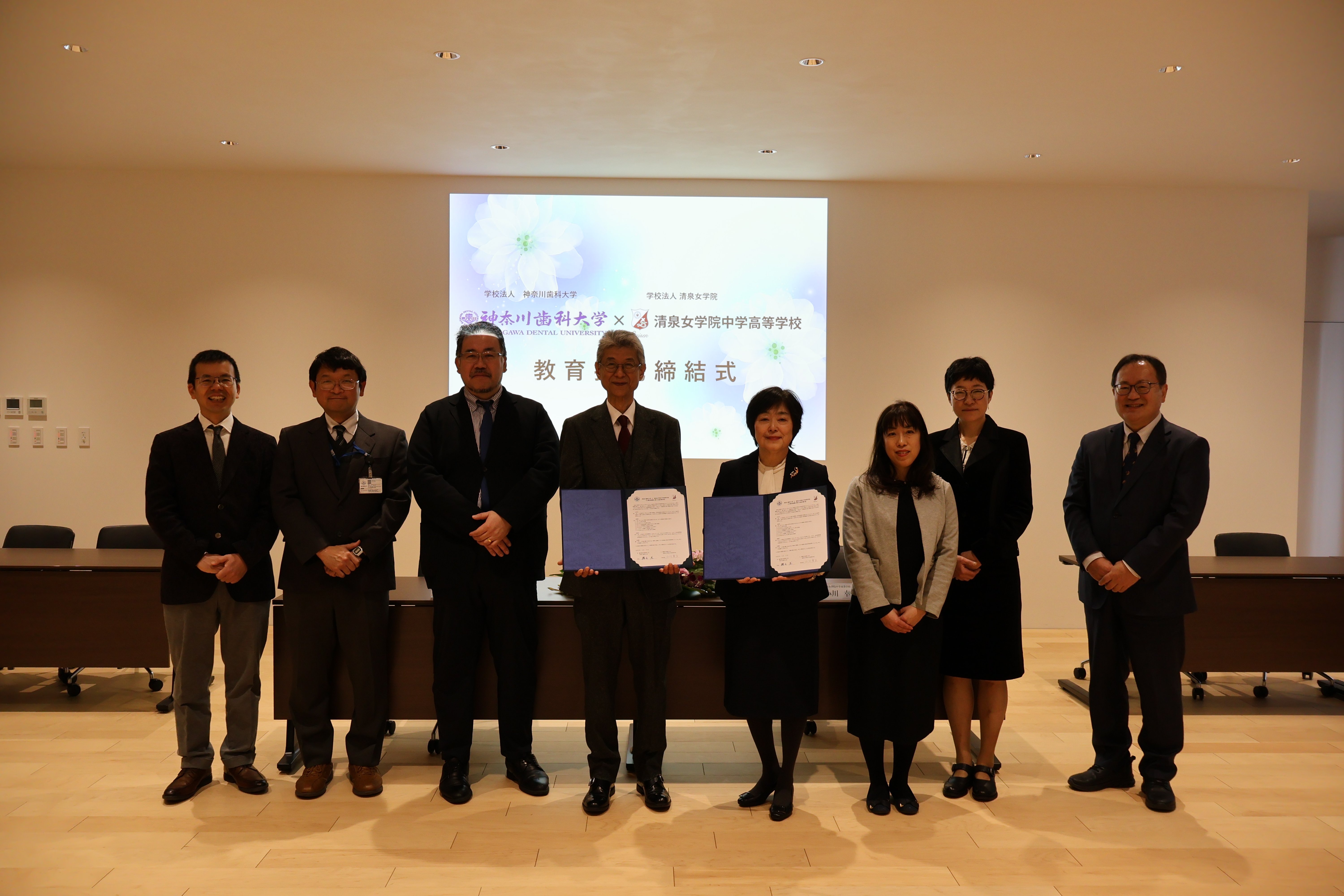 小川校長先生からは、清泉が横須賀を発祥の地とし、神奈川歯科大学とは長い歴史的ご縁を有していること、そして本校には医療分野を志す生徒が多いことから、今回の協定締結を大変嬉しく思っている、とのお言葉を頂戴しました。さらに、「理系女子の育成」を目標の一つとして掲げる中、日本の歯科医療の現状を踏まえ、社会におけるその重要性を強く認識している、との大変力強い心温まるご挨拶を賜りました。