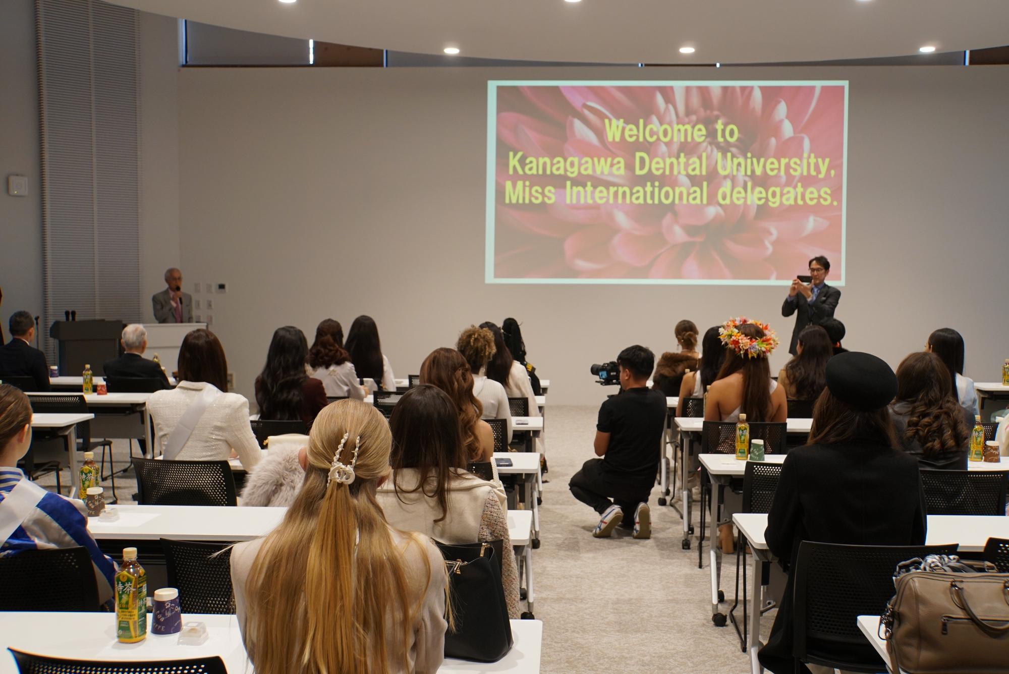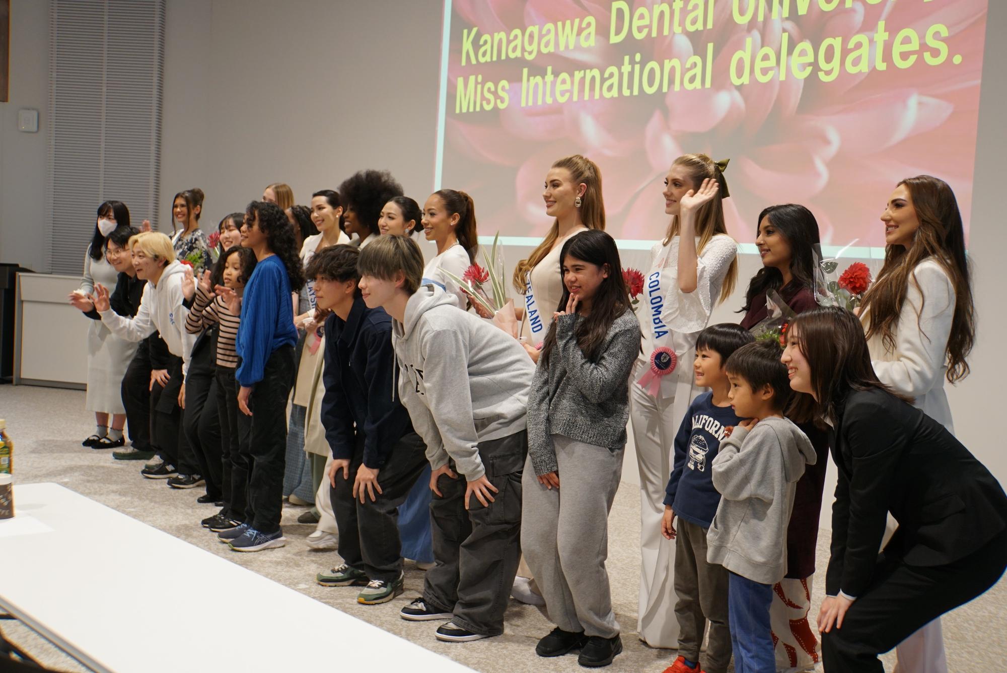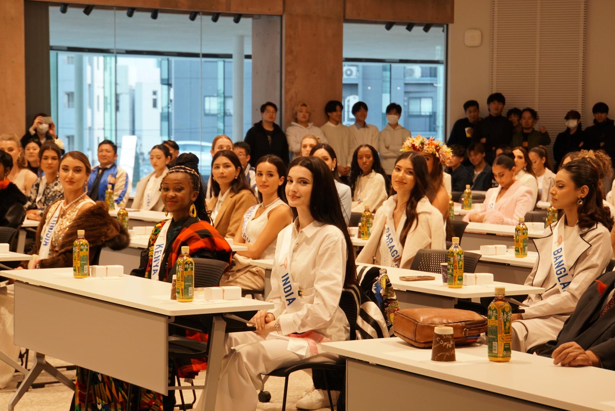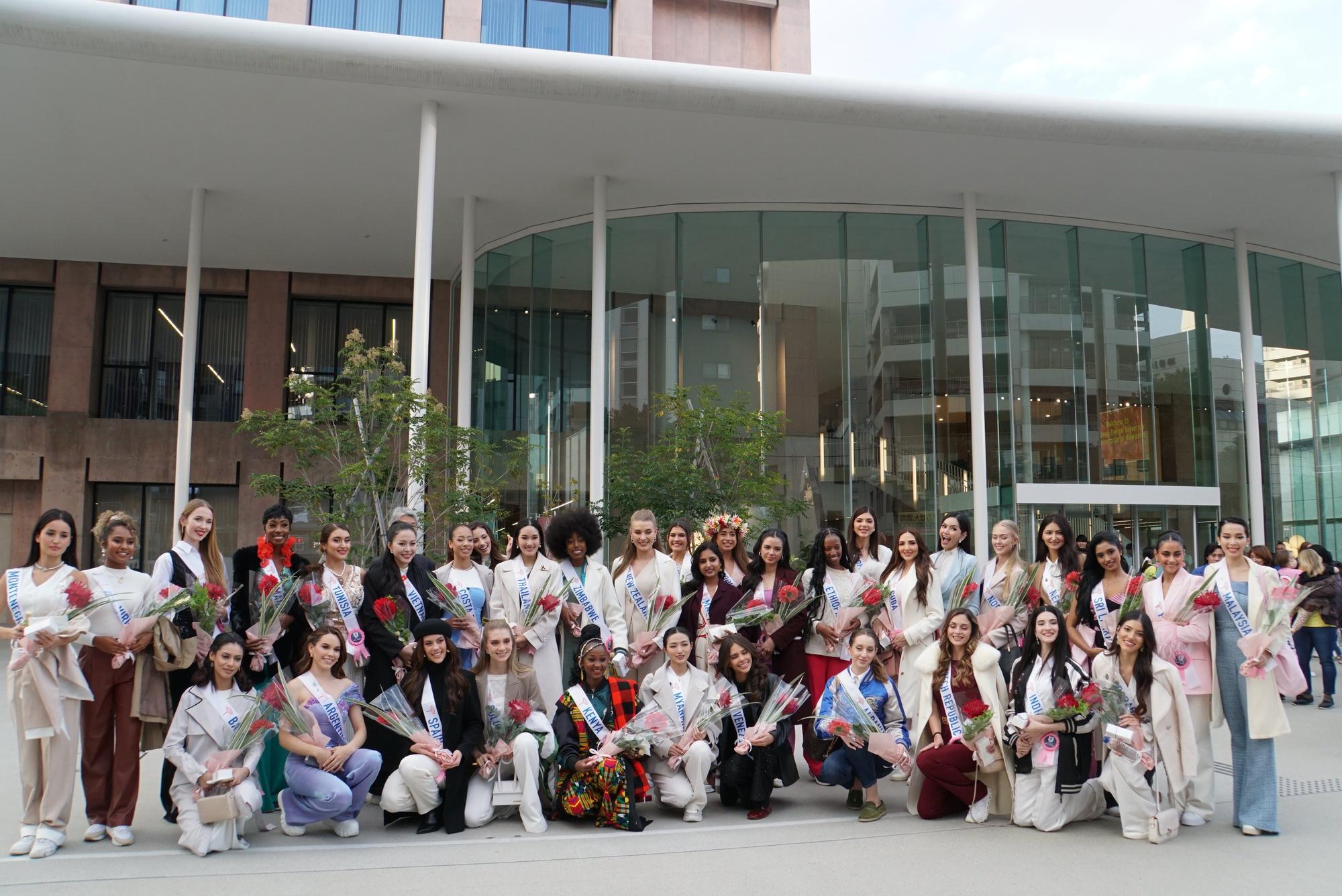 2025年11月18日(火)、本学と連携協定を締結しているミス・パリグループ様のご厚意により、ミス・インターナショナル各国代表35名の皆様が来校されました。