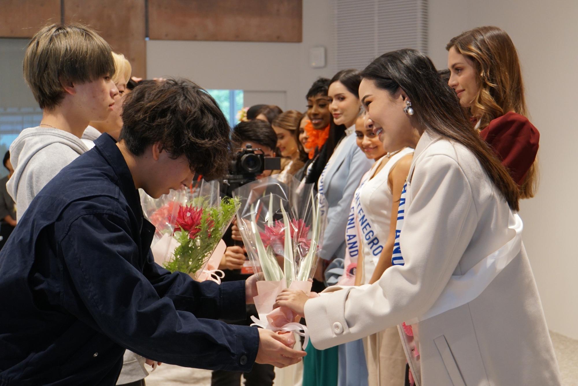 ミスの皆様は、その可憐な美しさと学生たちの純粋な想いに、心からの笑顔で応えてくださいました。