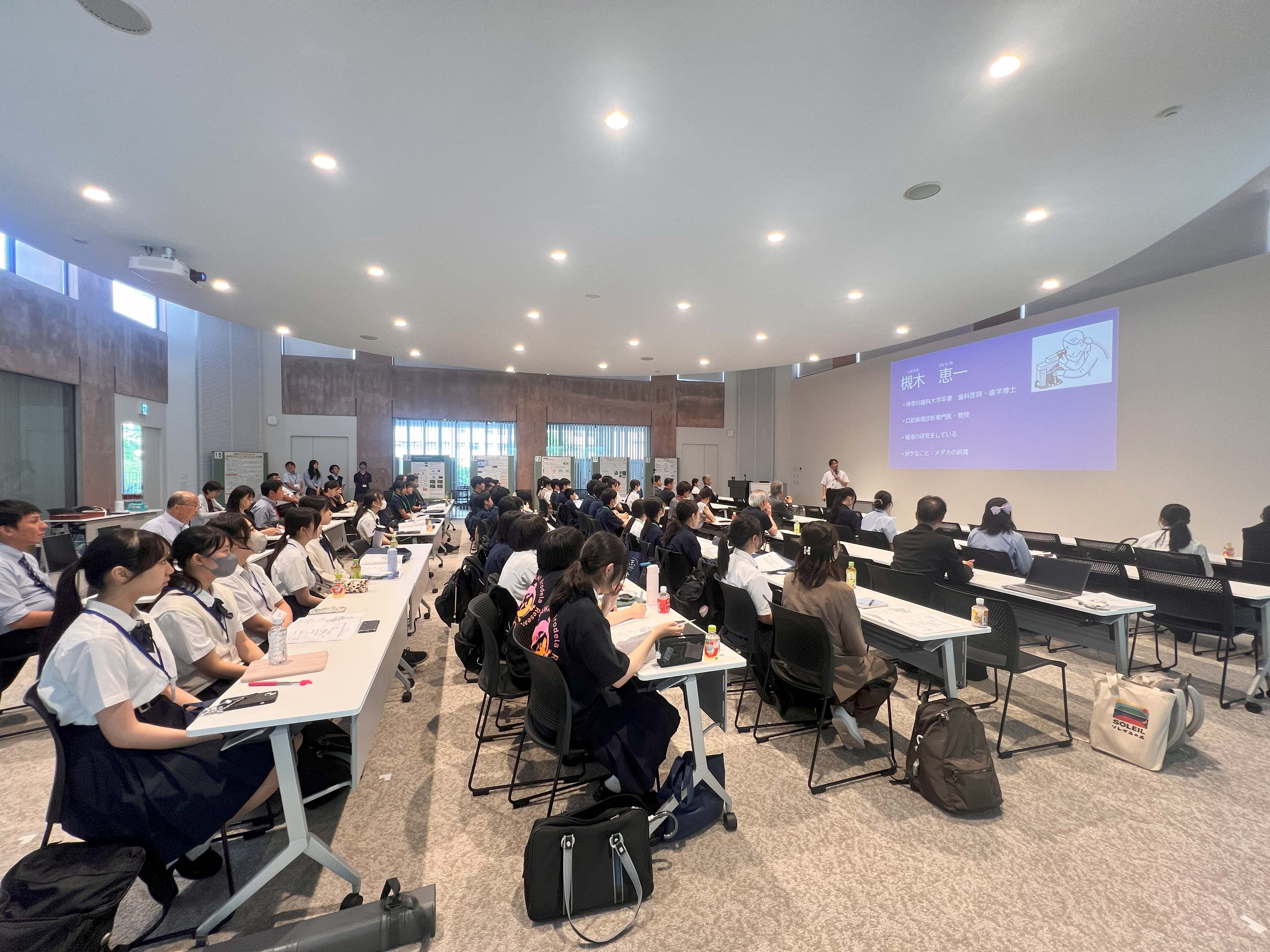 約100名の皆様にご参加頂き、中高生による22演題の多彩なポスター発表、槻木恵一先生による基調講演、校内見学のエクスカーションなど多彩なプログラムが行われました。ポスター発表では生徒の皆様は緊張しながらも瞳を輝かせ、研究への熱意を力強く発表していました。生徒同士、また大学教員と活発な質疑応答や交流が展開され、新たな学びや気づきが生まれる貴重な機会となりました。来年度も開催を予定しております。